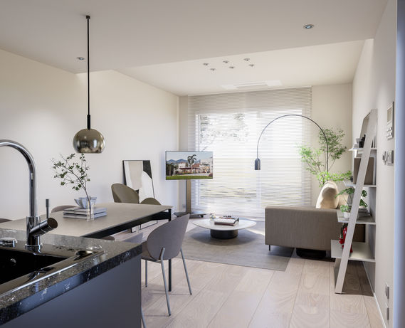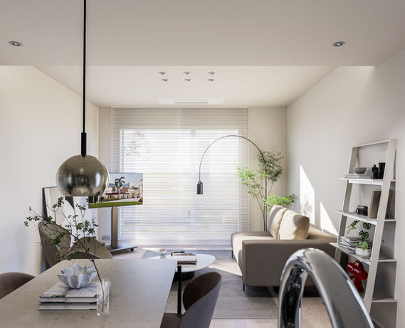 自然光が差し込む明るいリビング空間。